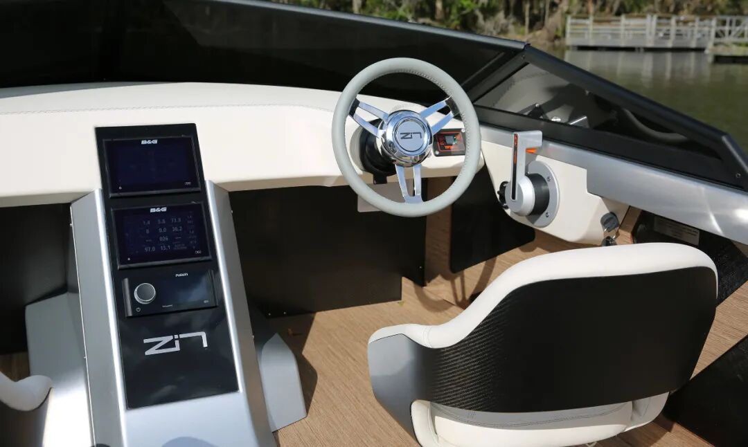 这艘安静且易于操作的船采用了高端电子设备、开关和音频系统,创造了一个简单而干净的“玻璃驾驶舱”。